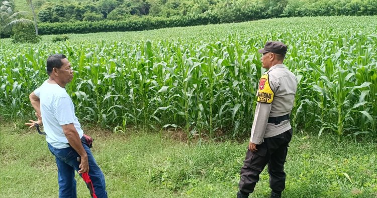 Dalam kunjungan tersebut, Bripka Heriyanto melakukan pemantauan langsung terhadap perkembangan tanaman jagung di atas lahan seluas 10.000 meter persegi (1 Hektar) milik Bapak Abd Muis. Lahan yang sebelumnya merupakan kebun kosong tersebut kini telah dikelola dengan baik dan tanaman jagung di lokasi tersebut terpantau telah memasuki usia tanam kurang lebih dua bulan. Petugas berdialog dengan pemilik lahan mengenai perkembangan tanaman serta kendala yang dihadapi selama masa pemeliharaan.