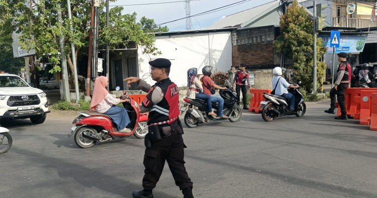 Pengamanan yang kita lakukan sebagai backup pengamanan yang dilakukan Polres Lombok Barat, mengingat Pawai Nyongkolan ini berlangsung di wilayah hukum Polres Lombok Barat sehingga arus kendaraan dari Simpang 4 Dasan Cermen menuju Lombok Barat harus diatur untuk mencegah kemacetan di jalur lokasi Nyongkolan.