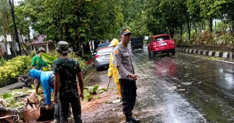Selain membantu proses penebangan dan evakuasi pohon, personel kepolisian juga melakukan pengamanan di sekitar lokasi serta pengaturan arus lalu lintas guna mengurangi kepadatan kendaraan dan mencegah terjadinya kecelakaan.